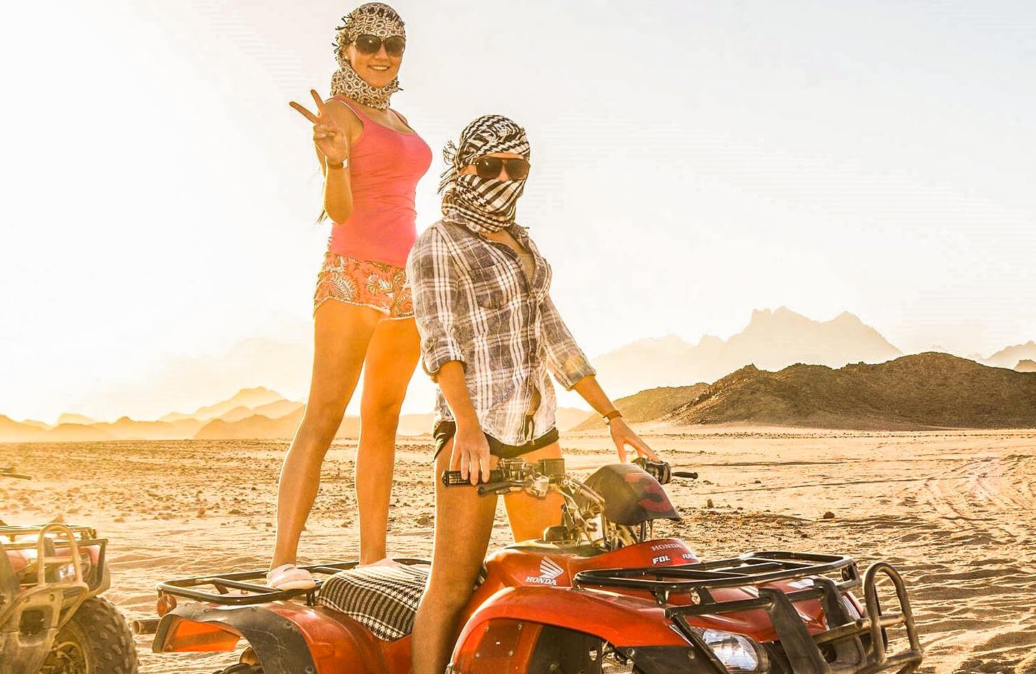 Your adventure begins with a thrilling quad bike ride across the vast Egyptian desert, where you will speed over golden dunes and experience the raw beauty of the landscape. As you navigate the rugged terrain, you will make a stop at a traditional Bedouin village, where you can learn about Bedouin culture, enjoy a refreshing cup of herbal tea, and even ride a camel.