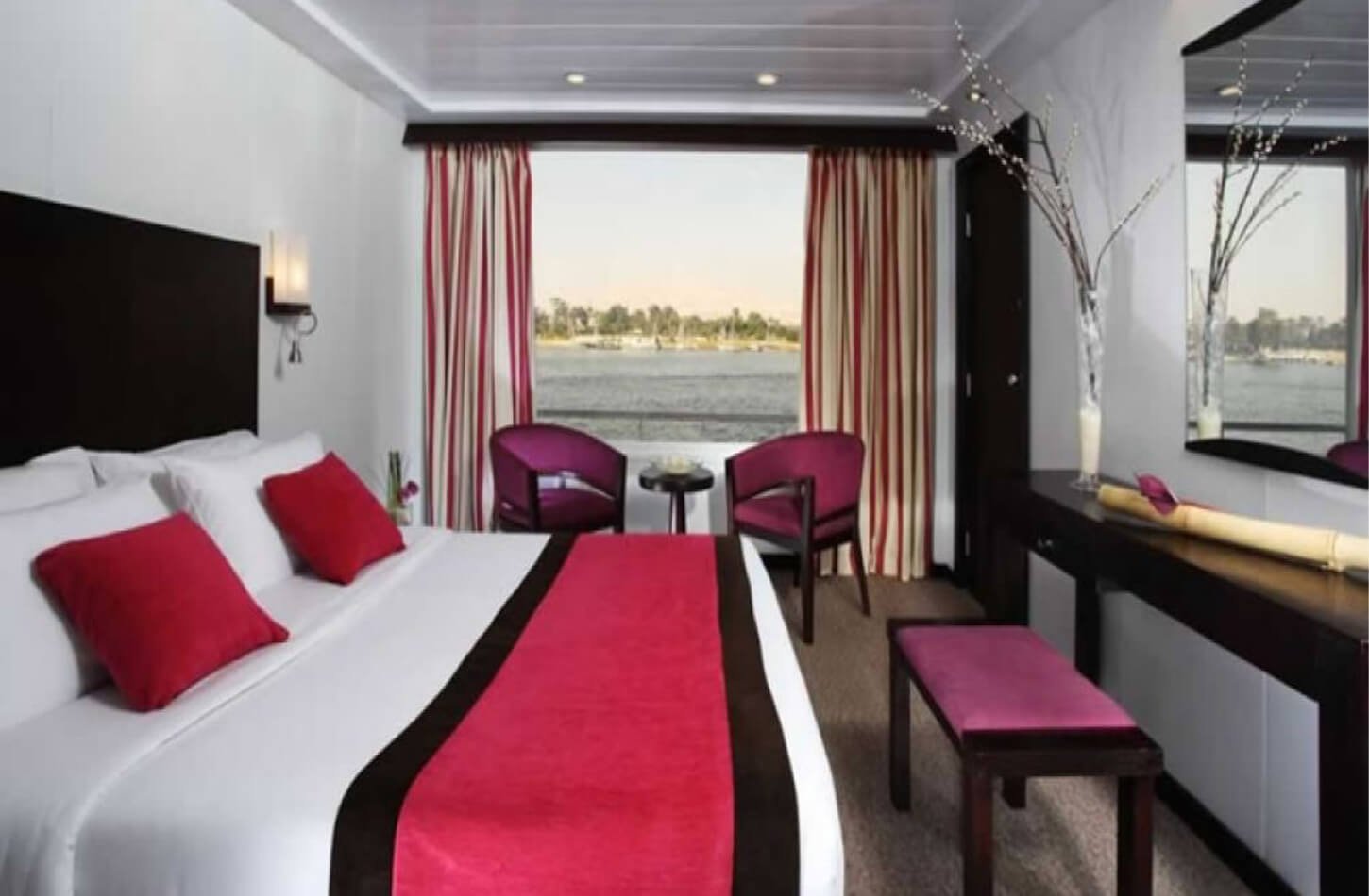 The Movenpick Royal Lily Nile Cruise is a luxurious 5-star floating hotel offering an unforgettable journey through Egypt’s timeless treasures. Sailing between Luxor and Aswan, this elegant cruise combines Swiss hospitality with Egyptian charm, ensuring a seamless blend of comfort, style, and culture. Guests can unwind in beautifully designed cabins with panoramic Nile views, a rooftop pool, and fine dining that showcases the best of international and local cuisine.